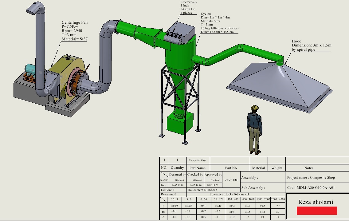 طراحی سایکلون صنعتی با استفاده از نرمافزار SolidWorks نمونهای از تواناییهای فنی و مهندسی شرکت آسیا لیزر در زمینه طراحی ماشینآلات صنعتی است.